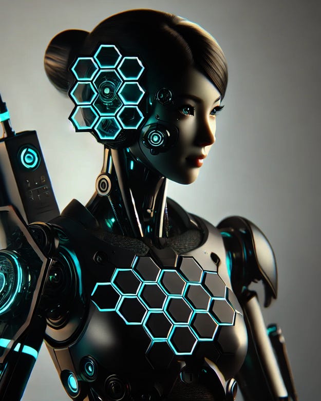 “Thank you Leitha” Eve had arrived in person, at security level II. Leitha’s cobalt chassis shone in translucence over her graphene tungsten endoskeleton in the dimly lit room. A few panels on the wall revealed an array of dataports and a single visual screen for redundancy. Leitha was plugged into one of the dataports running scans on the sandbox DMZ.